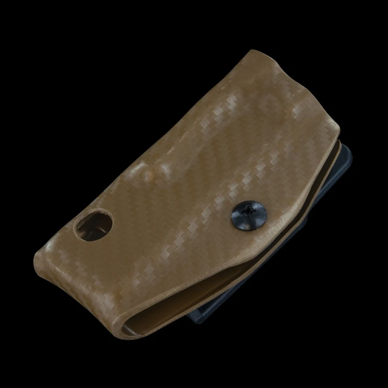 Kydex is one of the toughest thermoplastic acrylic-polyvinyl chloride materials known to man yet has enough give to make this sheath have an adjustable retention system for looser or tighter carry. It also has a heavy duty adjustable belt clip with up to 22 degrees of adjustability.