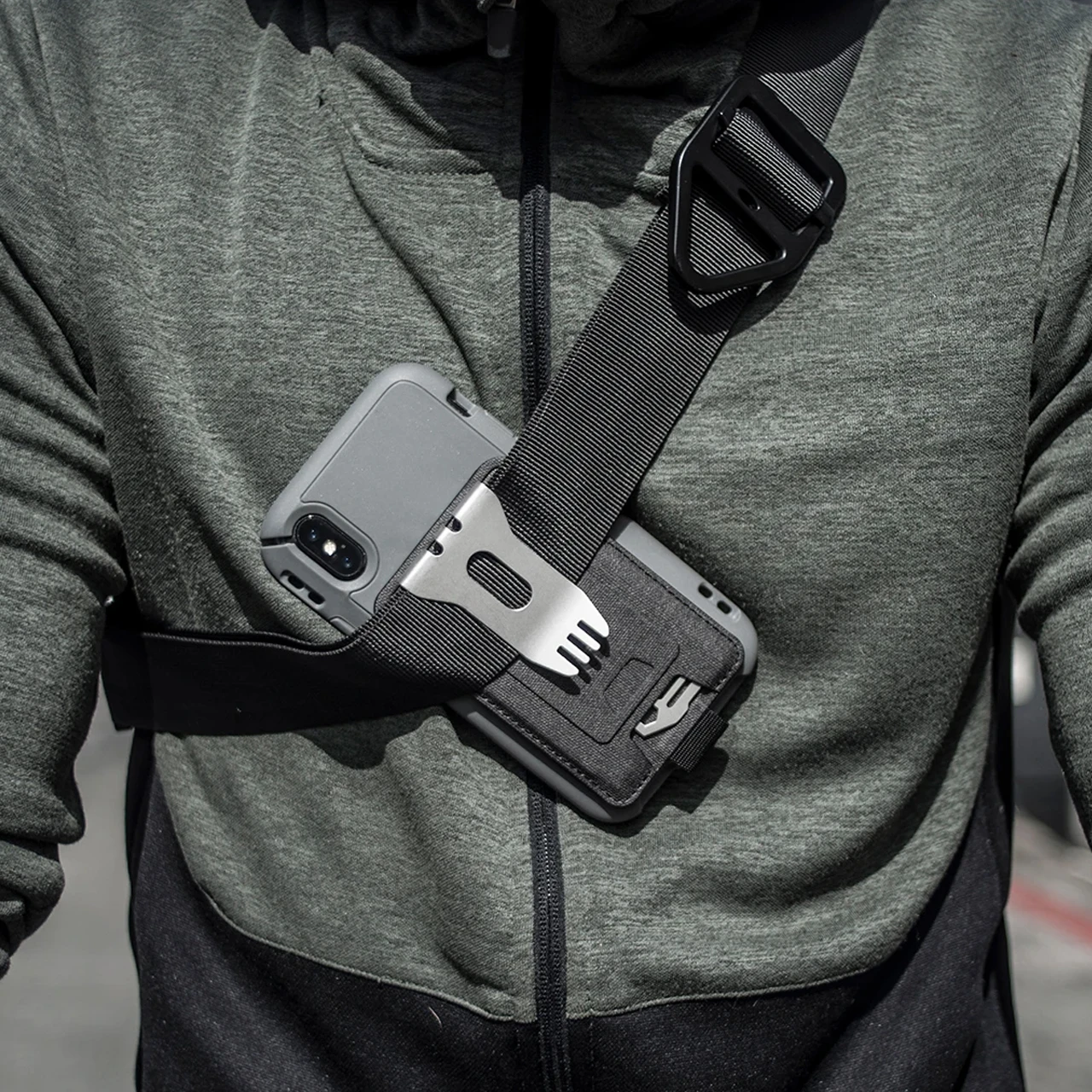 Dango S1 Phone Pockets are peel-and-stick card holders as well as a multi-tool sheath that adheres to the back of most smart phones and smart phone cases. Paired with the MT03 Comb & Clip Multi-Tool, your phone becomes equipped with a comb, a screwdriver, a ruler, a chisel, a bottle opener and many other handy capabilities.