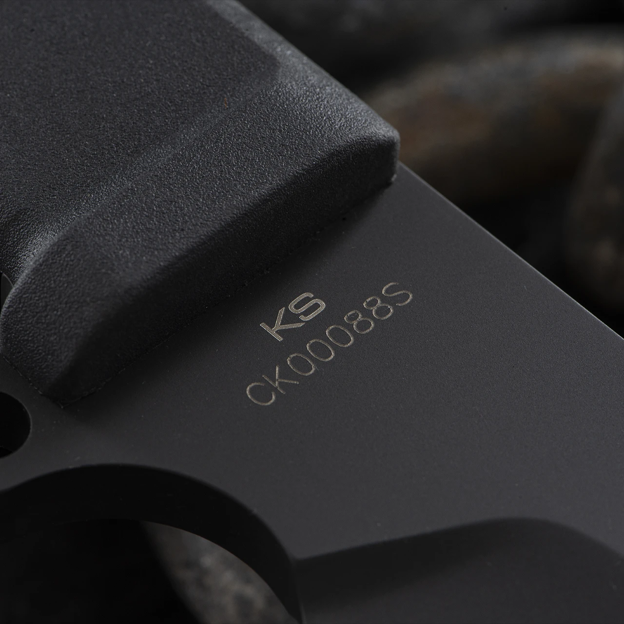 Extrema Ratio has developed this tool by blending ancient and modern design concepts. The KS Machete employs combination grinds. The razor-like hollow grind closer to the grip yields a fine, sharp edge without compromising the overall thickness of the back of the blade (which needs to be extremly strong).