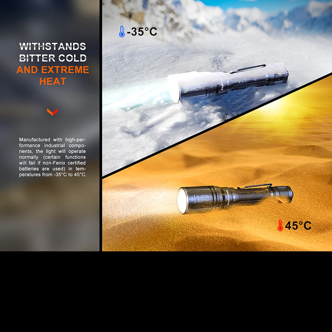 Fenix HT30R is a compact, premium quality professional hand held LEP (Laser Excited Phosphor) torch dedicated to extreme long range lighting. The light creates a white light beam similar to the LED spectrum by shining a 10w laser diode onto a phosphor crystal, then focusing the light generated into a tight, long range beam using integrated lenses.