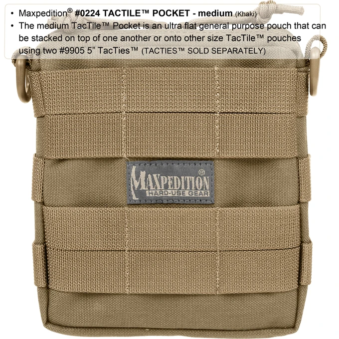 The Maxpedition Medium TacTile Pocket is an ultra flat general purpose pouch that can be stacked on top of one another or onto other size TacTile pouches.