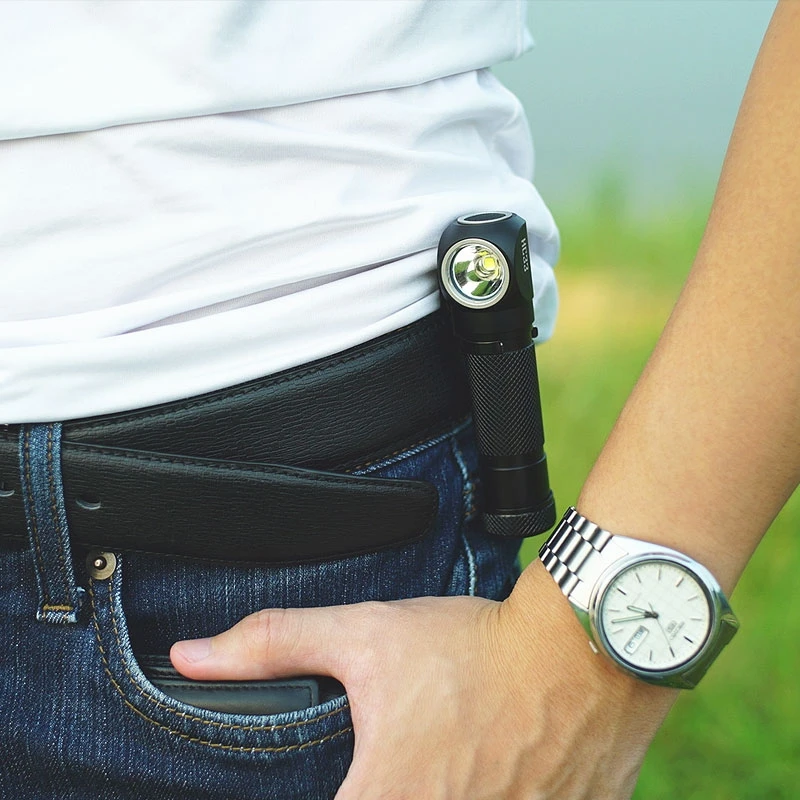 The included headband is made from quality elastic nylon, which is comfortable and can also be worn over a helmet. A rubber bracket holds the torch in place and allows the light to be angled up or down easily with one hand. The HC33 can also be used as a hand held light and includes a pocket clip for this purpose. The tail cap has a magnet inside allowing for attachment to metal surfaces for even more hands free uses such as when working on motor vehicles.