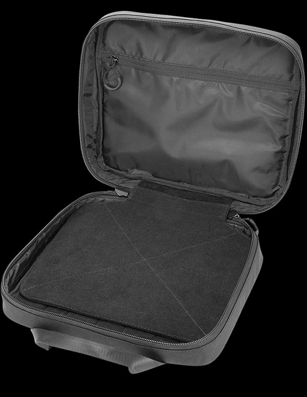 Inside the case is expandable storage for increased capacity. This includes a zippered compartment, a main compartment and a detachable centre divider to separate and organise belongings. Both the main compartment and the divider have hook and loop surfaces, further increasing optional, additional storage facilities.