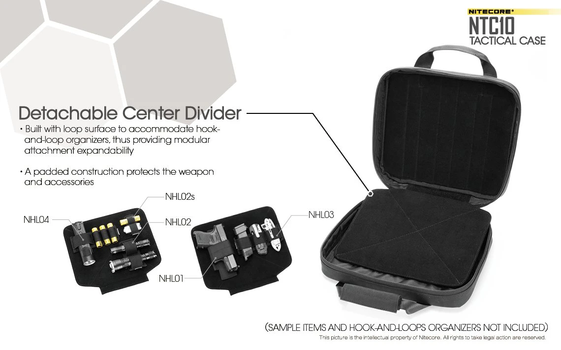 Featuring a hypalon synthetic rubber Molle system, the NTC10 accepts modular attachment which enhances storage capacity. For example, a Nitecore NUP10, NUP20, NDP10 or NDP20 can be attached (sold separately). With this system on the front, the back of the case offers a hook and loop attachment for further storage or customisation.