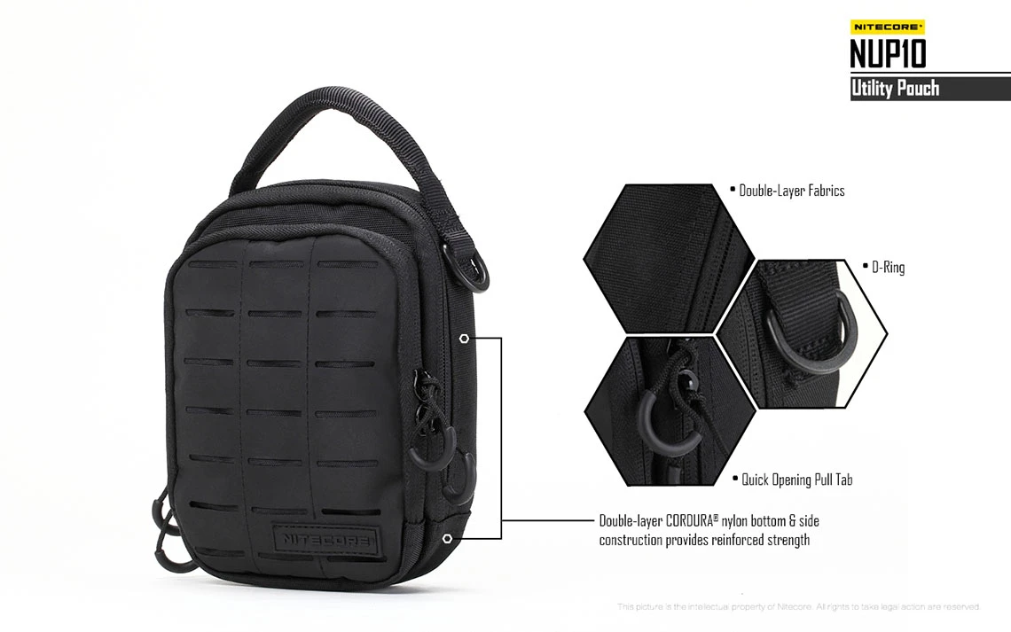 The Nitecore NUP10 is a hard-wearing utility pouch made from military-grade 1000D Nylon. It is ideal for rugged use as it can withstand all conditions, thanks to the Cordura nylon and Hypalon synthetic rubber.