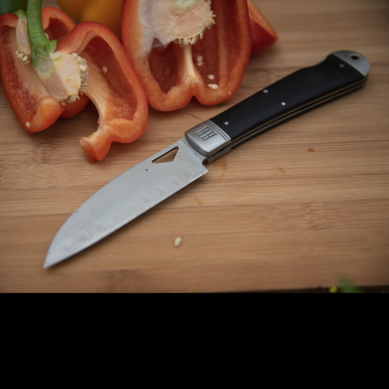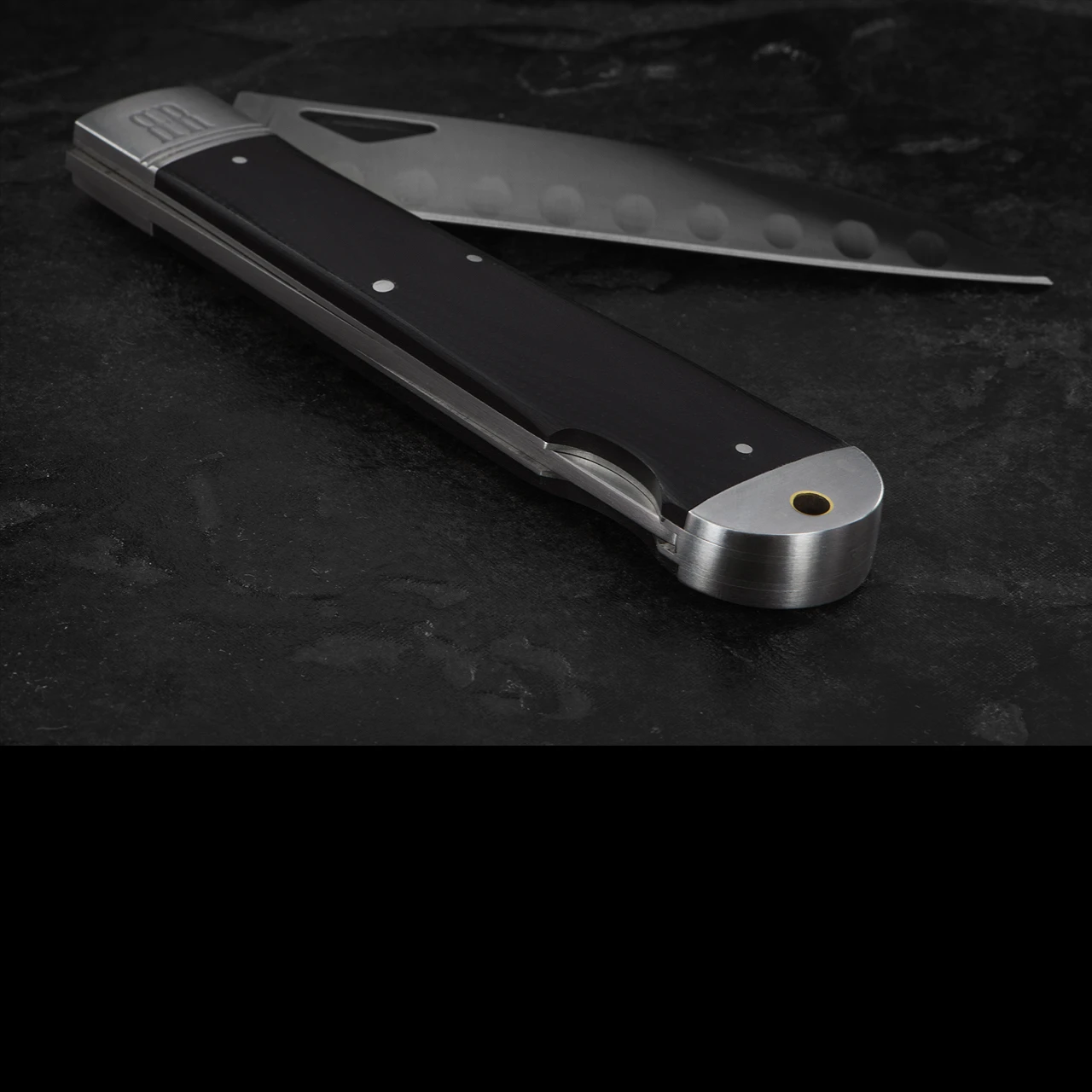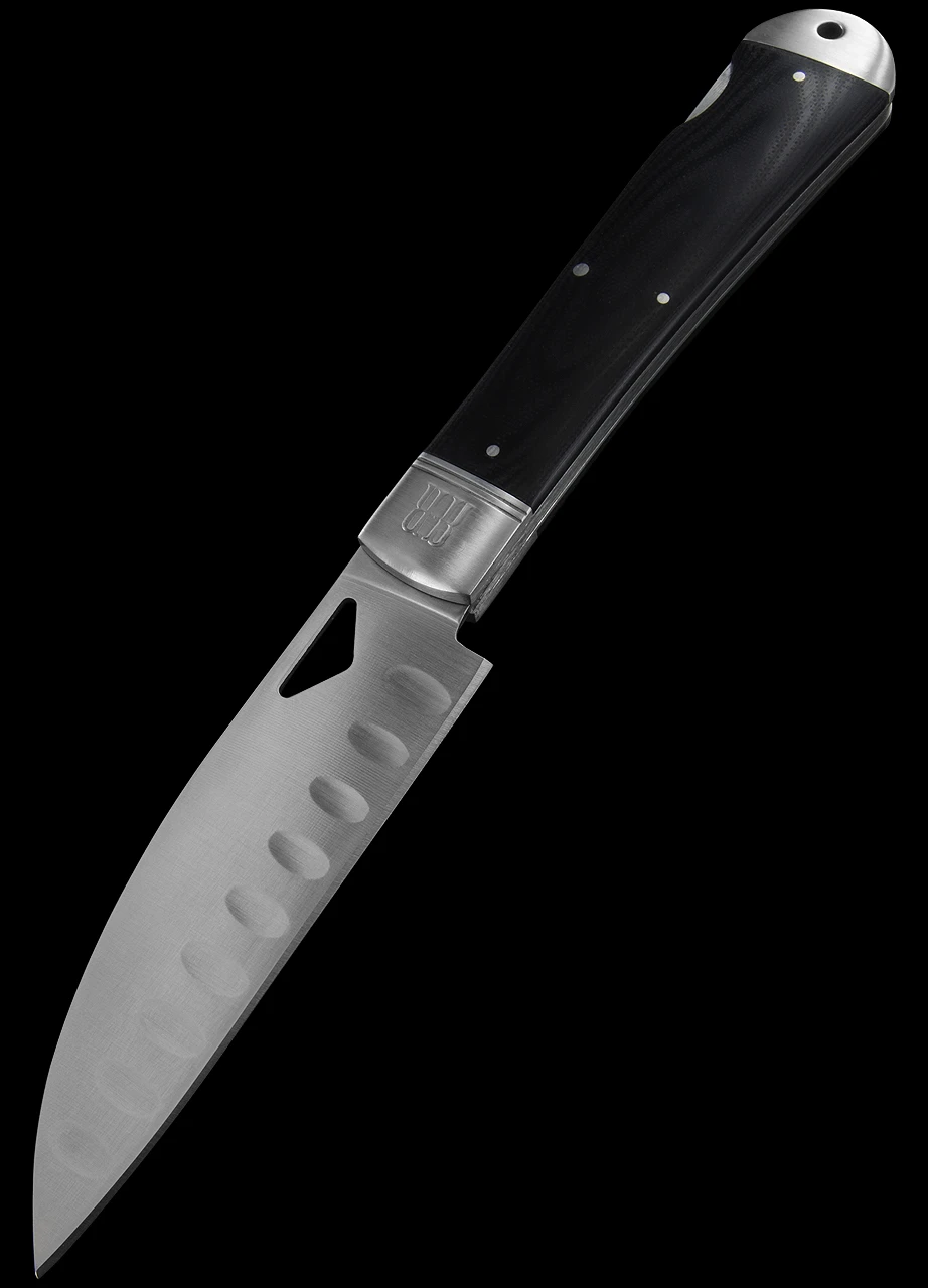 The perfect tool in the home or out in the sticks, the Rough Rider Sous Chef is a folding kitchen knife that will handle food prep anywhere you take it. The blade is made from stainless steel and features a granton edge, making cutting a breeze. The handle is G10 which will survive the harshest conditions. The hole in the blade will allow one handed opening so you can chop that veg at speed!