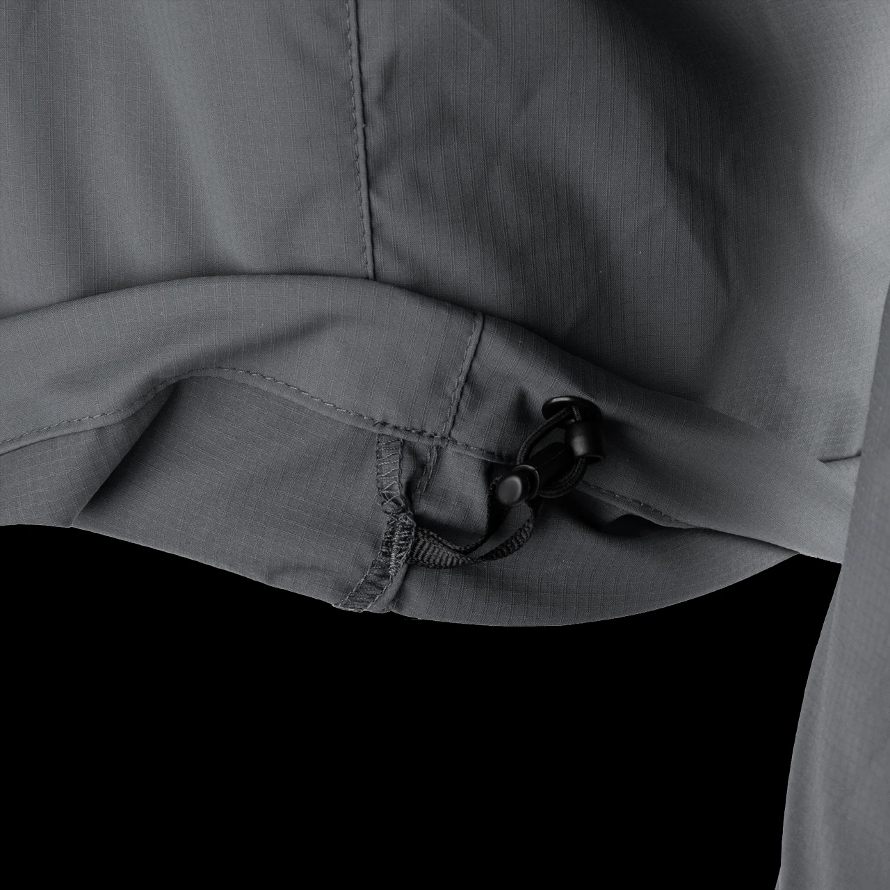The SX material is wind resistant while its high quality DWR finish provides light rain protection without impacting breathability. Elastic cuffs and a bottom hem drawcord allow the Aerie SX Anorak to be sealed tight to the body ensuring wind and loose debris cannot penetrate.