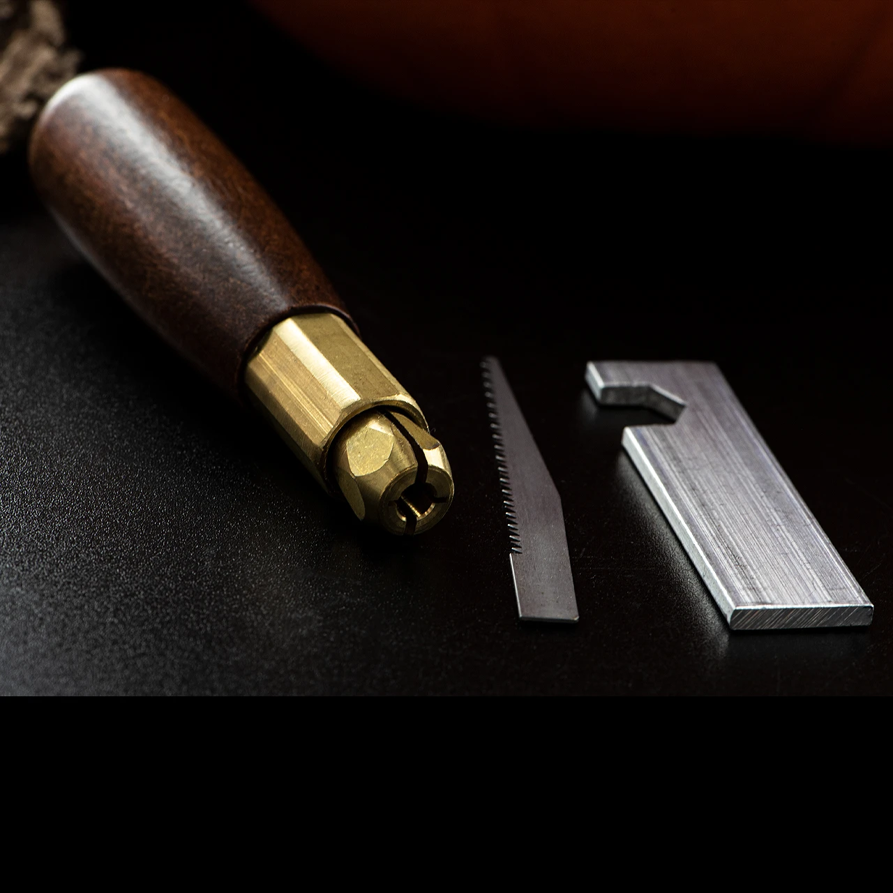 - One 11cm (4½”) walnut handle with brass three way chuck