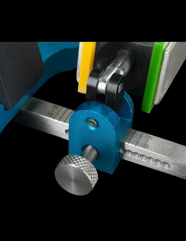 - Continuously variable angle adjustment from 15 to 30 degrees on each side the knife (30 to 60 degrees inclusive)
